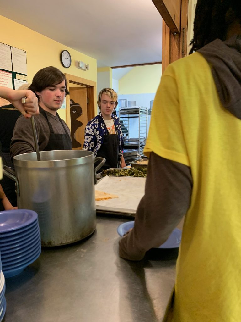 Campers serve soup during the final lunch