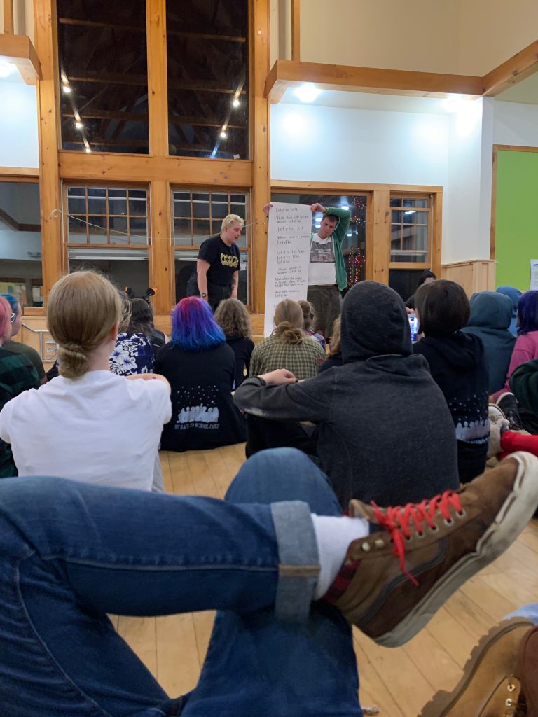 Jr. staff leads the beginning of the final evening meeting