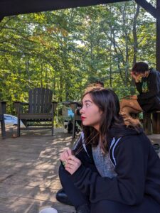 Morning meeting is run by Brenna, it goes by like a breeze. I sit next to Graham and Perry, we play a game called the cats cradle with all those in proximity to us in meeting. I learned this game for the first time yesterday and its become one of my favorites at an alarming rate. It’s time for advisee, we get our covid tests, stuffed animals and head to the lodge porch where my advisee meets up. (Christian is my advisor and I couldn’t be happier.) we all tested negative! Then decided to play contact after our check-in. My word was rollercoaster and they guessed it! Advisee ends after endless fun and it’s time for a big group of folks to play Gaga ball! I definitely get scraped up, it felt pretty equal amongst all the players, such an inviting feeling. I actaully win one of the games and Julien bet on me winning! (You’re welcome J) I finish up and roll into the shower, then it’s time for lunch!! It’s a taco bar and I am ecstatic. I ate with Phaedrus in the hammock, learning about his upbringing. One of my friends told me learning about people is like opening flowers, I’ve never been able to forget that.