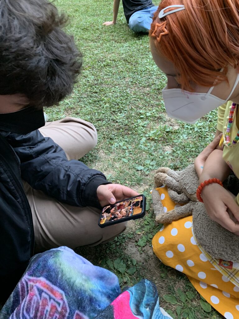 After I decided I REALLY wanted to swim so I ran around camp asking if anyone wanted to, at first I got a lot of no’s, but eventually we got enough people. So me, Xane, Lucy, Marcus, Jason, Aidant, and Phaedrus, headed down to the creek. It was super cold, but I loved it, Lucy and Jason didn’t go in. Phaedrus stood in the water shaking. we played creek seat (it’s hot seat but in the creek) and then took a group shower in our bathing suits in dog wood.